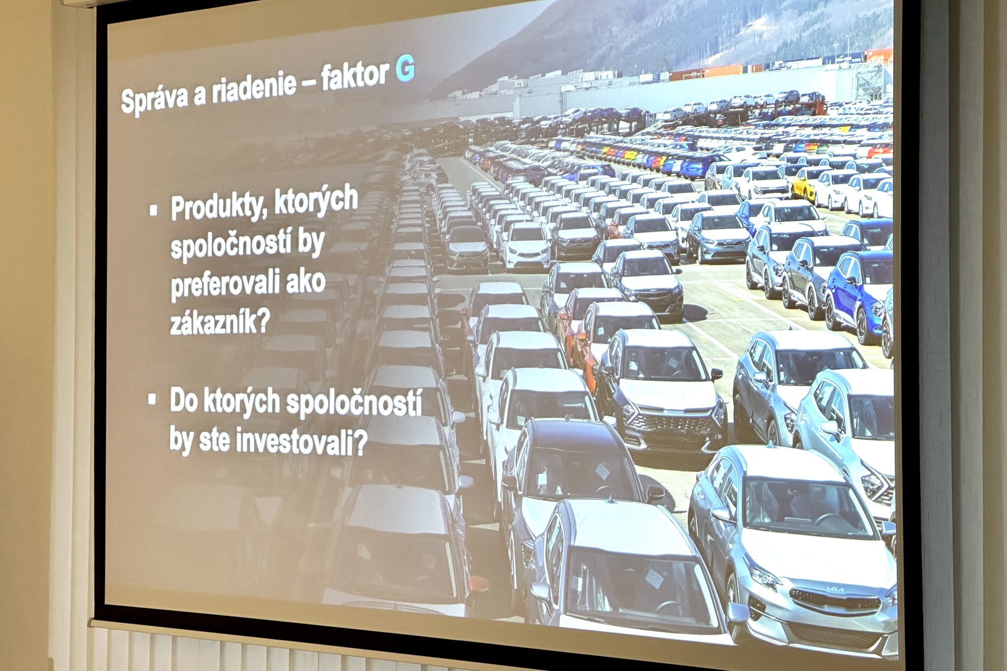 V rámci predmetu etika podnikania sa študenti 5. ročníka inžinierskeho štúdia v študijnom programe ekonomika podniku spolu s pedagógmi doc. Ing. Mgr. Gabrielou Dubcovou, PhD., a Ing. Ľubicou Foltínovou, PhD., z Fakulty podnikového manažmentu EUBA, zúčastnili na ESG tréningu v spoločnosti Kia Slovakia s. r. o. Tento tréning sa uskutočnil 28. a 29. novembra 2024, s obsahom: stáž, exkurzia, diskusné fórum a kolokviálna forma obhajoby záverečnej prípadovej štúdie. Cieľom bolo ukázať študentom praktickú aplikáciu etických princípov a praktického využitia princípov ESG v modernom podnikovom prostredí líderskej multinacionálnej korporácii na európskom kontinente.