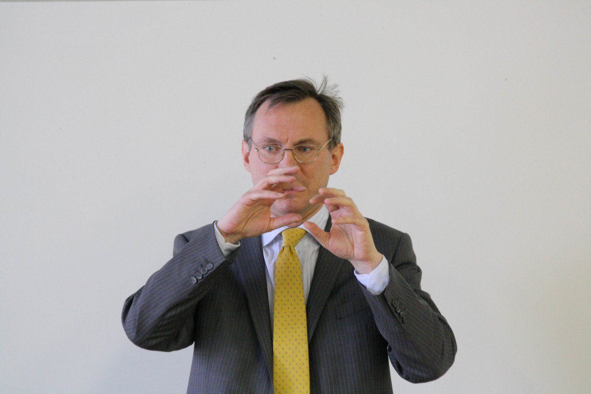 Fotogaléria - J. E. BRIAN MCELDUFF prednášal študentom FAJ EU