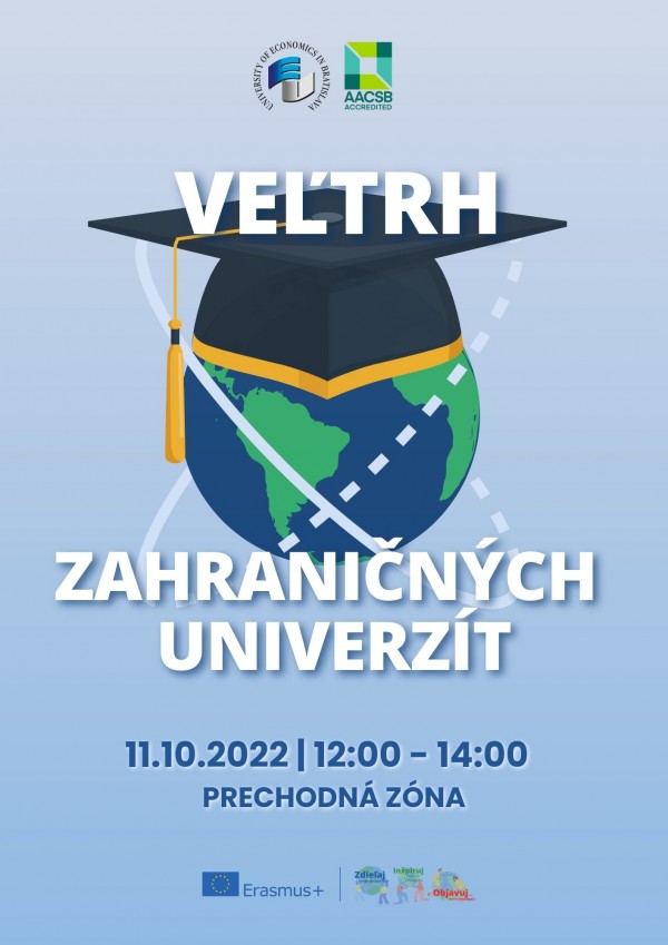 Centrum medzinárodných vzťahov EU v Bratislave pripravilo pre študentov podujatie Veľtrh zahraničných univerzít, ktoré sa uskutoční 11. marca 2025. Na tomto podujatí zahraniční študenti predstavia svoje domáce univerzity a svoje krajiny.