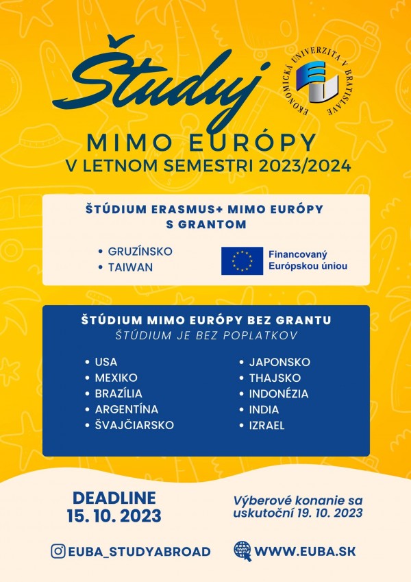 Oddelenie medzinárodnej mobility EUBA vyhlásilo Fotosúťaž pre vycestovaných študentov Ekonomickej univerzity v Bratislave v letnom semestri akademického roka 2022/2023.